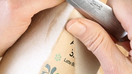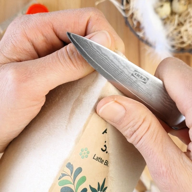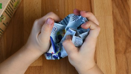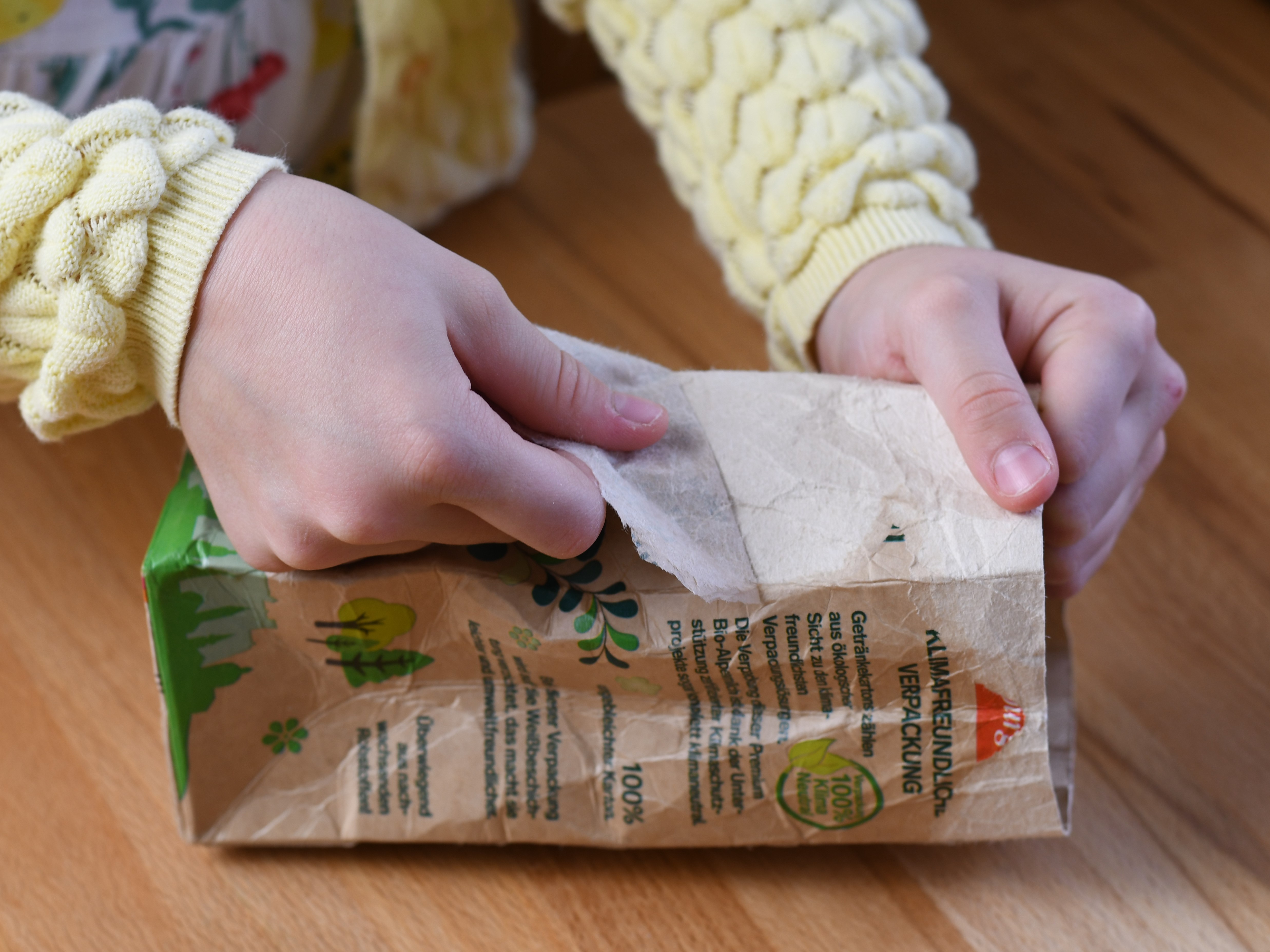 Äußere bedruckte Schicht der Packung mit einem Messer abziehen (Diese Aufgabe sollte ein Erwachsener übernehmen).