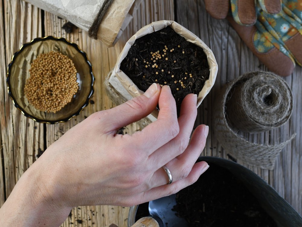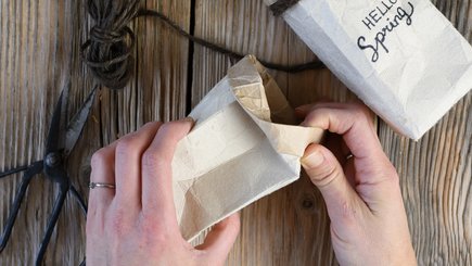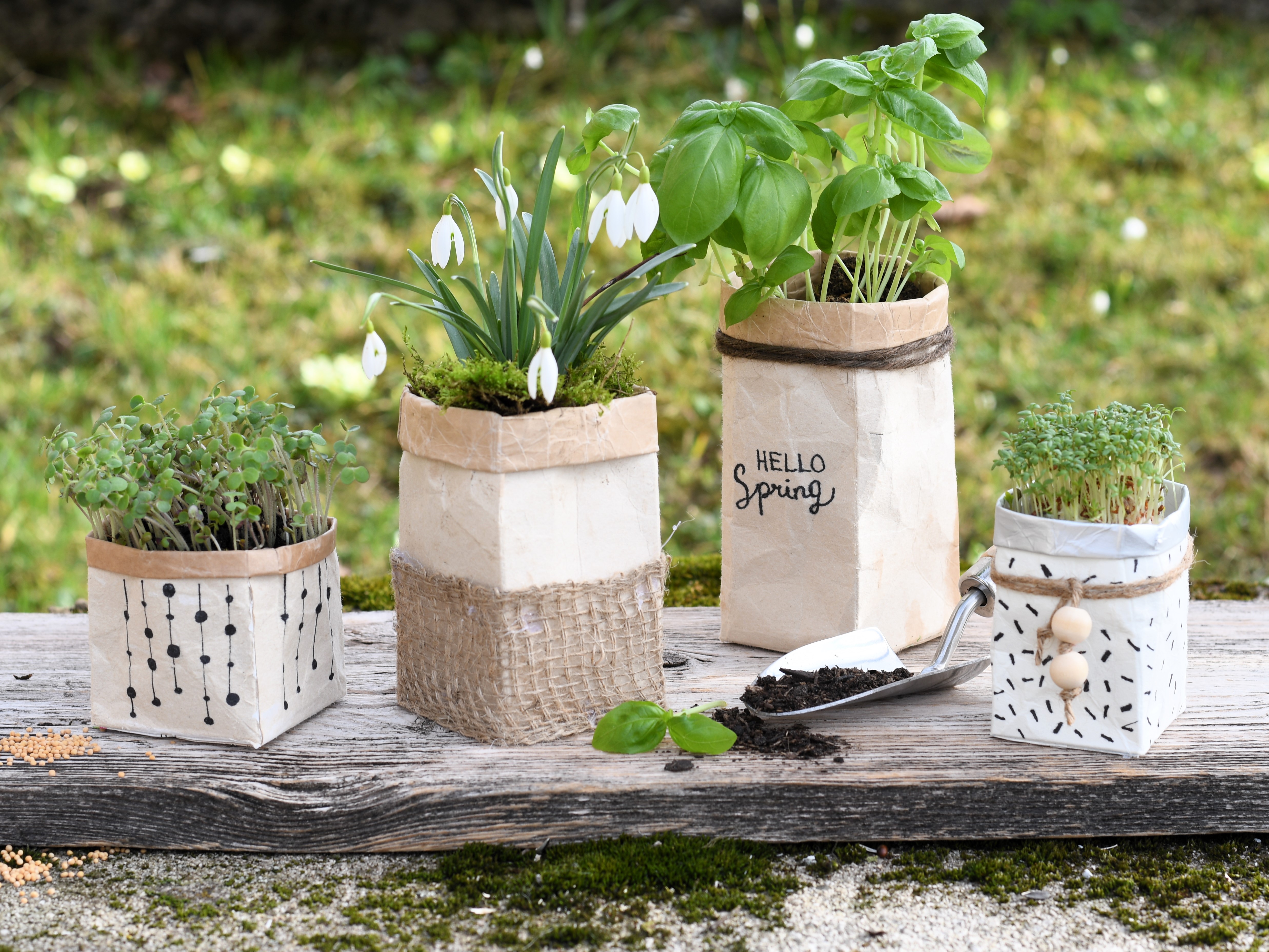 Die fertigen Packerl mit Erde oder Watte füllen und gießen.