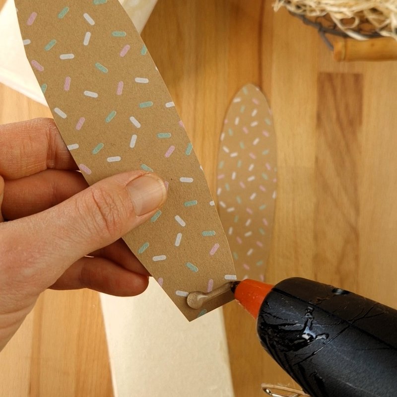 Die Hasenohren auf der Hinterseite des Kartons kleben.
