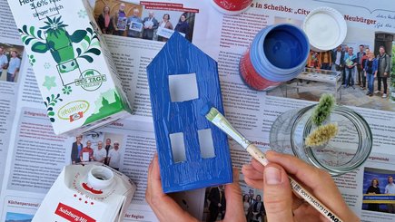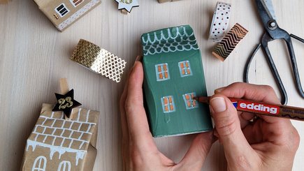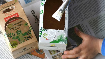 Milchkartons mit Kreide- und Lackstiften bemalen.