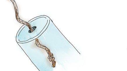 Ein Stück Schnur abschneiden (etwa 3-5m). Die Schnur sollte genau so lange sein, wie ihr später beim Telefonieren voneinander entfernt sein werdet. Mit einem spitzen Gegenstand ein Loch in die Hinterseite des Jogurtbechers stechen (Hier lasst ihr euch am besten von euren Eltern helfen). Die Schnur durch das Loch fädeln, sodass etwa 15 cm Schnur aus dem Jogurtbecher herausschauen. Jetzt jeweils am Ende einen Knoten machen, damit die Schnur nicht mehr herausrutschen kann und anschließend mit dem Klebestreifen (2-4 cm) festkleben.