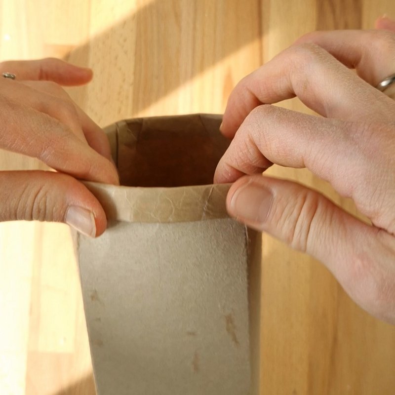 Oberen Rand der Packung ca. 1 cm umfalten. Vorgang wiederholen.