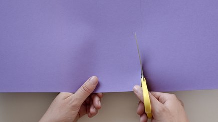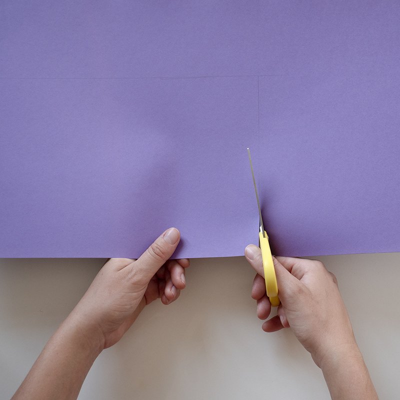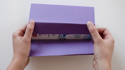 Nimm dein buntes Papier und schneide ein großes Stück weg. Es muss groß genug sein, um die Milchpackung darin einzuwickeln.