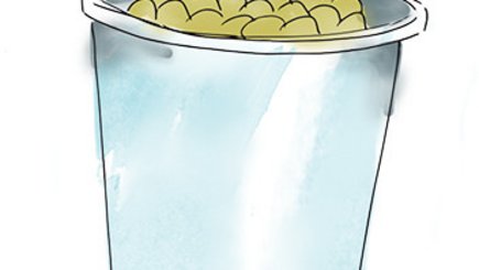 Einen der Jogurtbecher mit Reiskörnern oder Kieselsteinen füllen. Dann setzt ihr den zweiten Jogurtbecher umgedreht genau auf die Öffnung des ersten Bechers und klebt die Jogurtbecher mit Klebeband zusammen. Rührt euch nun den Kleister an und reißt das Transparentpapier in größere Schnipsel. Jetzt mit dem Kleister die Schnipsel rund um die Jogurtbecher kleben. Ihr könnt den Kleister am besten mit einem Pinsel auftragen. Abschließend bestreicht ihr die komplette Rassel mit Kleister, damit später alle Farbschnipsel gut halten. Lasst die Rasseln gut trocknen und fertig ist eure selbstgebaute Rassel.