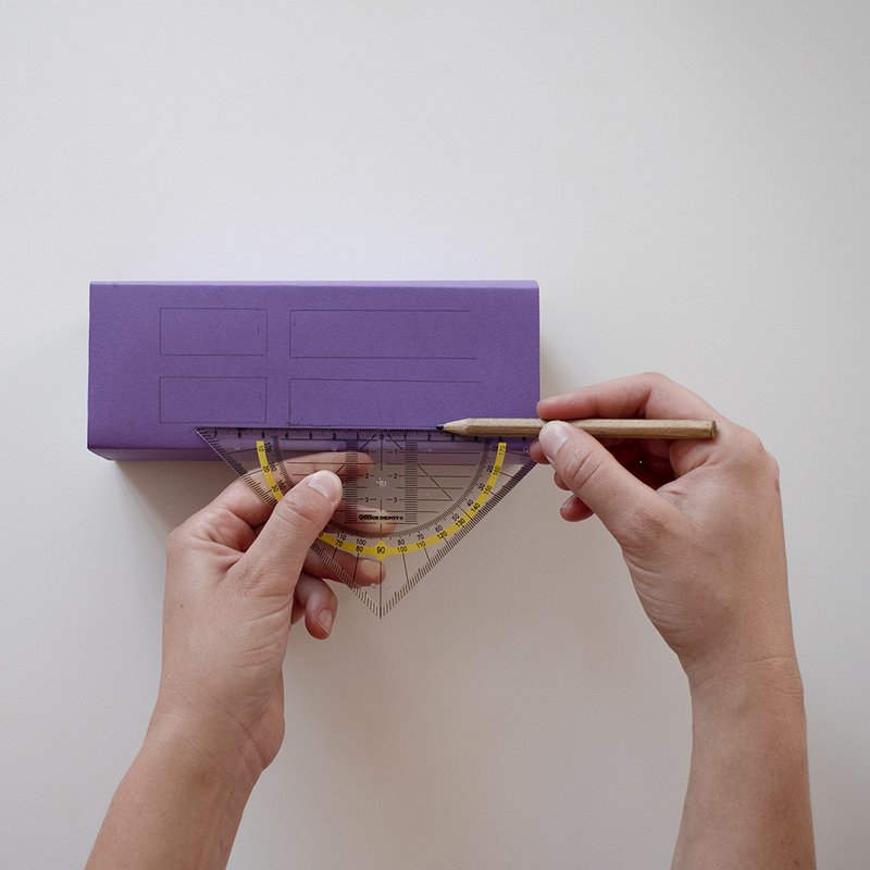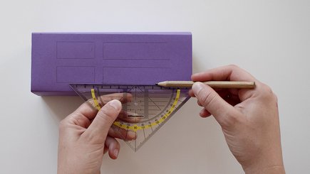 Miss nun mit dem Geodreieck auf allen 4 Flächen der Milchpackungen jeweils 4 kleine, längliche Vierecke aus.