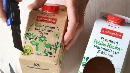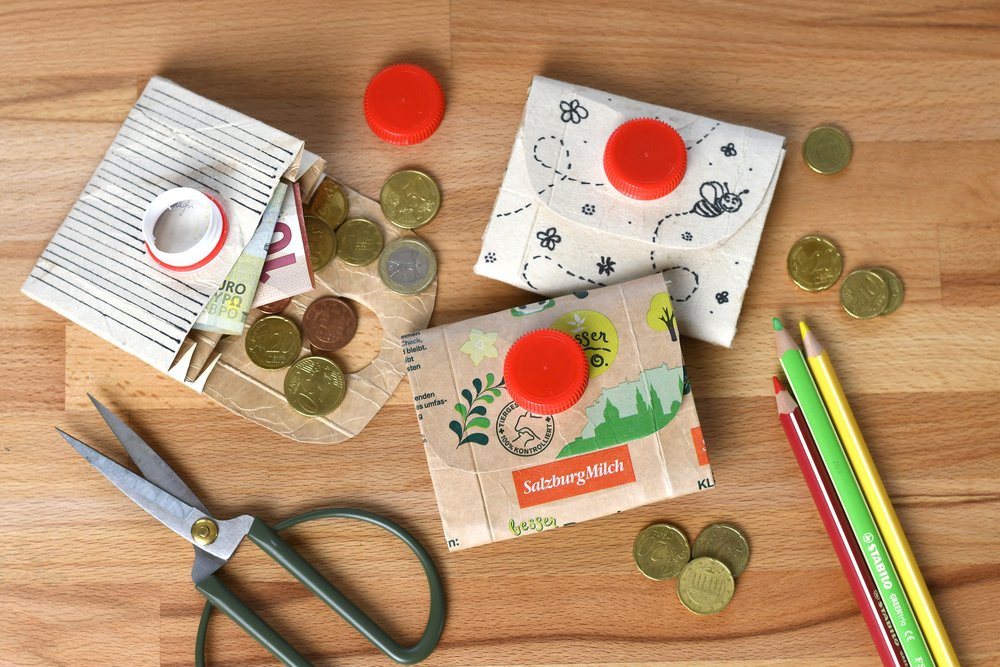 Fertig ist deine Geldbörse aus einem SalzburgMilch Milchkarton.