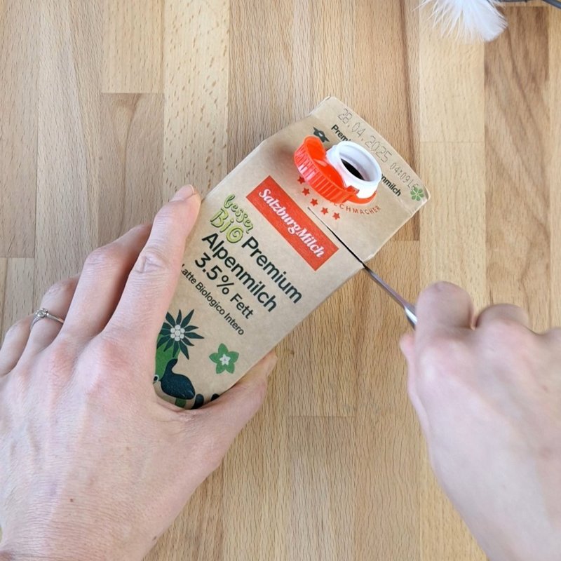 Tipp: Verwende am besten eine Bio-Milchpackung. Damit klappt es noch besser!