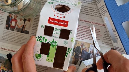 Folge der Schritt für Schritt-Anleitung und schon bald hast du aus einer SalzburgMilch-Milchpackung eine tolle Laterne gebastelt.
