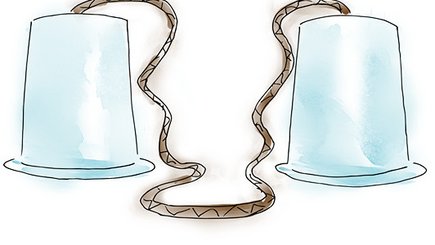Nun nehmt ihr jeweils einen Becher und entfernt euch so weit voneinander, dass die Schnur zwischen euch gespannt ist. Und los geht's!