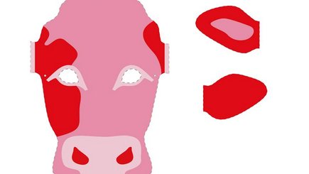 Die Vorlagen für die Kuhmasken öffnen und ausdrucken (Vorlage Rot oder Vorlage Blau). Kopf und Ohren ausschneiden. Die Ohren am Kopf anbringen. Links und rechts neben den Augen das kleine eingezeichnete Loch ausschneiden. Das Gummiband am Kopf abmessen, durch die Löcher fädeln und zuknöpfen. Fertig ist deine lustige Kuhmaske!