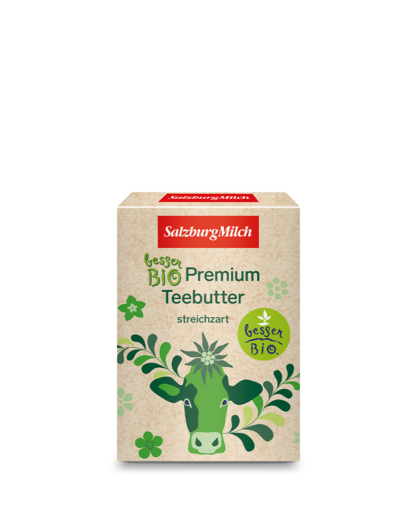 100% gentechnikfreie Biomilch aus kontrollierter biologischer Landwirtschaft ist die Basis für die Bio Premium Teebutter. Mit ihrer besonderen Streichfähigkeit und ihrem köstlichen, cremig-milden Geschmack nimmt sie schon lange einen Fixplatz im heimischen Kühlregal ein.