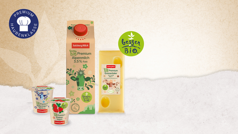 Das Haubenklasse-Logo finden Sie sowohl auf den beliebten SalzburgMilch Premium Produkten als auch auf den Bio Premium Produkten der SalzburgMilch.