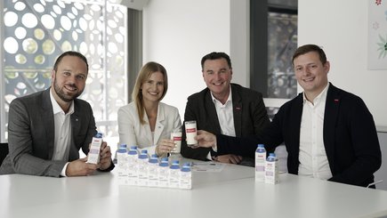 Die Menschen hinter dem gemeinsamen Erfolg (von links): Nino Schmid (Key Account Manager Austria & Switzerland bei SIG), Vanessa Bogner (Marketing Manager DACH bei SIG), Andreas Gasteiger (CEO bei SalzburgMilch), Sebastian Mösl (CCO bei SalzburgMilch).