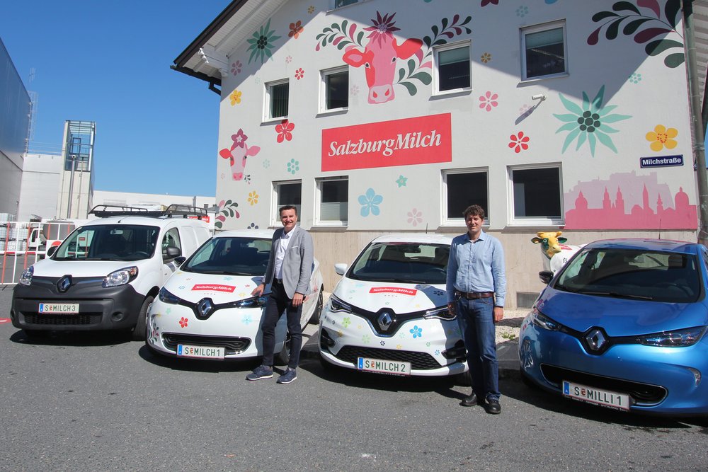 Und noch eine erfreuliche Nachricht gibt es aus der SalzburgMilch. Denn der Fuhrpark an E-Autos wurde erneut um ein weiteres Auto erweitert. So werden beispielsweise bereits seit einigen Jahren Dienstfahrten in der Region mit einem Elektro-Poolauto absolviert und auch der Hofberater Willi Niedermüller ist bei seinen Besuchen der von ihm betreuten Bauern der SalzburgMilch emissionsfrei unterwegs. Auch die betriebseigenen Schlosser sind seit einiger Zeit elektrisch unterwegs und transportieren auch größere Anschaffungen in ihrem praktischen E-Lieferwagen. Und ab sofort sind auch die SalzburgMilch Elektriker elektrisiert und nutzen das E-Mobil intensiv für Besorgungen und Bereitschaftsdienste. Die Akzeptanz der SalzburgMilch Mitarbeiter gegenüber den Elektroautos ist enorm positiv, so wird die Familie der E-Fahrzeuge auch in Zukunft noch wachsen!