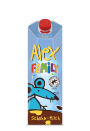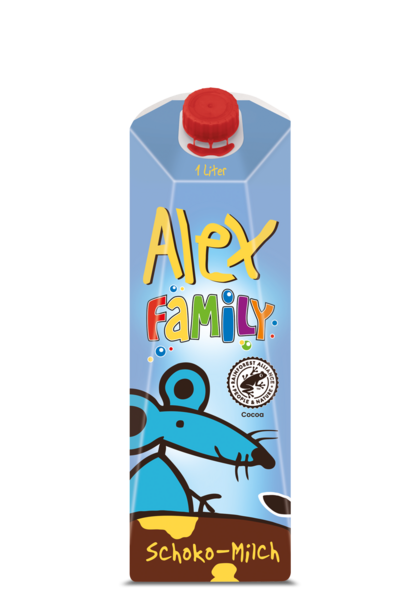 Erhältlich ist Alex in der praktischen 250-ml-Packung mit Trinkhalm, und für besonders durstige Schokotiger zudem in der 1-Liter-Packung mit Schraubverschluss für ein einfaches Portionieren.