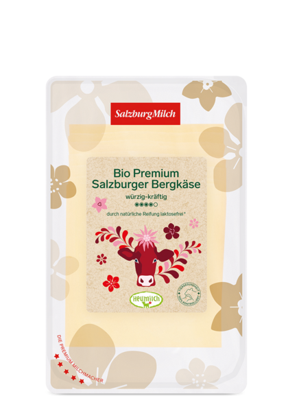 Der Bio Premium Original Bergkäse mit 50 % F.i.T. (34 % Fett absolut) wird nach überlieferter Tradition gekäst und in seiner Naturrinde zur vollen Reifung gebracht. Seine Basis ist reinste Bio-Heumilch, die von Kühen stammt, die im Sommer frisches Gras und im Winter sonnengetrocknetes Heu genießen. Und gerade diese Bio-Heumilch verleiht dem Bio Premium Original Bergkäse seinen wunderbar g’schmackigen, würzigen Charakter.