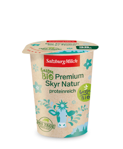 Speziell bei ernährungsbewussten Genießern ist der Bio Premium Skyr im 400g-Kartonmantel-Becher mit seinem niedrigen Fettgehalt (0,5 % Fett) bei gleichzeitig hohem Proteingehalt besonders beliebt. Er überzeugt mit cremiger Konsistenz und wird in einem schonenden Verfahren aus österreichischer Bio-Heumilch hergestellt. Diese Milch stammt von Kühen, die 365 Tage Freilauf im Jahr genießen und somit ein besonders freies Leben führen können.