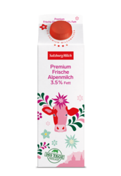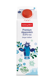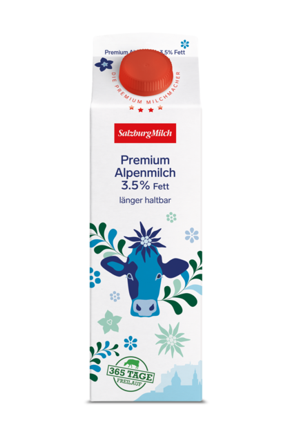 Als erste Molkerei Österreichs hat die SalzburgMilch eine Milch auf den Markt gebracht, welche die strengen Anforderungen des neuen AMA-Gütesiegels „Tierhaltung Plus Außenklima“ erfüllt. Wer zu einer Packung Premium Alpenmilch oder Premium Frische Alpenmilch greift, hat die Gewissheit, dass die Milchkühe, von denen diese Milch stammt, 365 Tage im Jahr Bewegungsfreiheit und Zugang zum Außenklima genießen. Ideale Voraussetzungen also für beste Lebens- und Umweltbedingungen! Darüber hinaus erhalten die Milchkühe im Rahmen der einzigartigen SalzburgMilch Tiergesundheits-Initiative perfekte Bedingungen für ihr Wohlergehen und zwar weit über gesetzliche Bestimmungen hinaus. Dazu zählen unter anderem auch regelmäßige Tiergesundheits-Checks durch unabhängige Kontrolleure, die Fütterung mit pamlölfreiem und gentechnikfreiem Futter und der uneingeschränkte Zugang zu frischem Wasser.