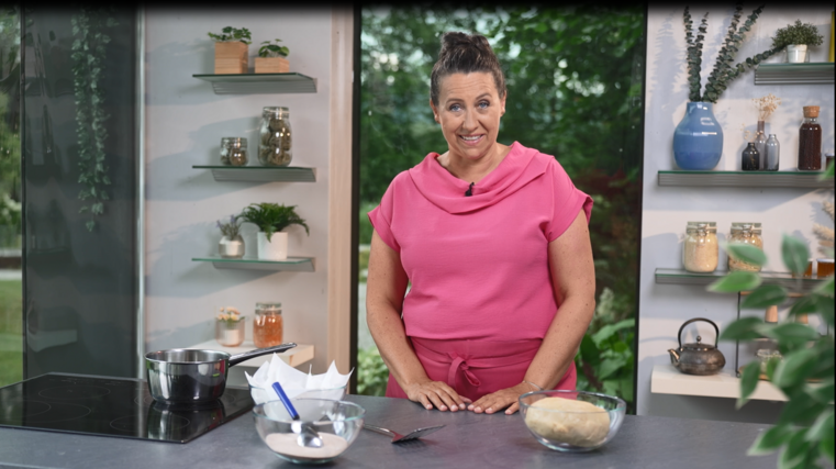 Die trockenen Zutaten – Mehl, Zucker, Salz – auf der Arbeitsfläche miteinander vermischen. Die Butter in kleinen Mengen dazugeben und mit dem Mehl abbröseln. Zum Schluss den Rahm hinzufügen und zu einem glatten Teig kneten.