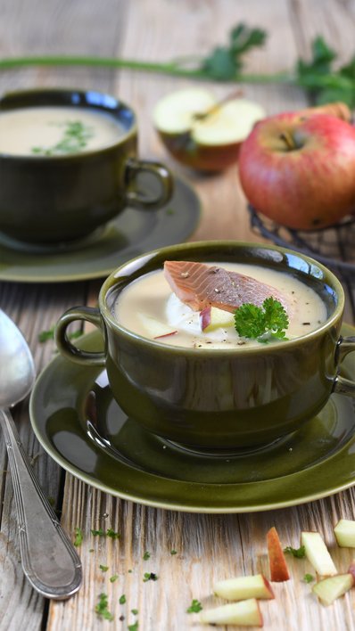 Die Kartoffeln, die Äpfel und die Sellerieknolle gründlich waschen, schälen und würfelig schneiden.