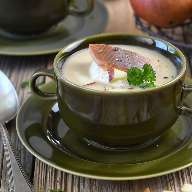 Mit frischer Petersilie garnieren und mit Räucherforelle servieren.