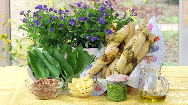 Das Pesto schmeckt köstlich als Brotaufstrich, zu Pasta, Kartoffeln, zu Fisch oder als Füllung von Bärlauch-Stangerl.