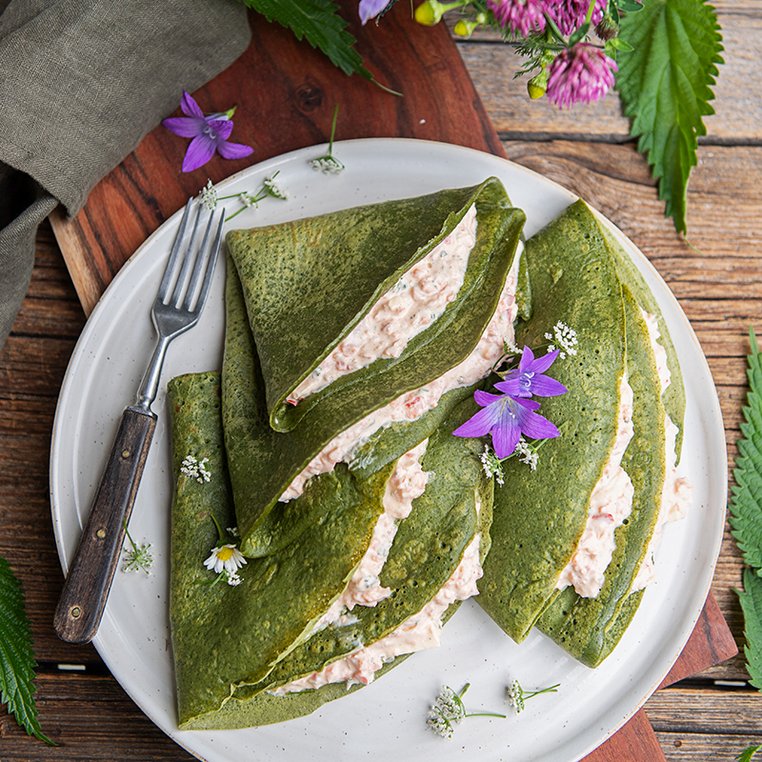 Etwas Öl in einer großen Pfanne erhitzen, den Palatschinkenteig darin nach und nach dünn ausbacken und mit der Füllung servieren.