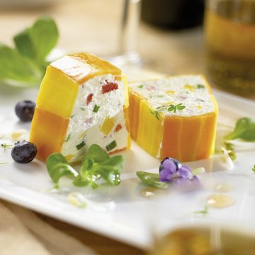 Vor dem Servieren aus der Form stürzen, Folie abziehen und in gleichdicke Scheiben schneiden.