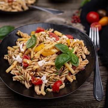 Tipp: Der Nudelsalat schmeckt noch besser, wenn er ein paar Stunden oder über Nacht im Kühlschrank durchziehen kann.