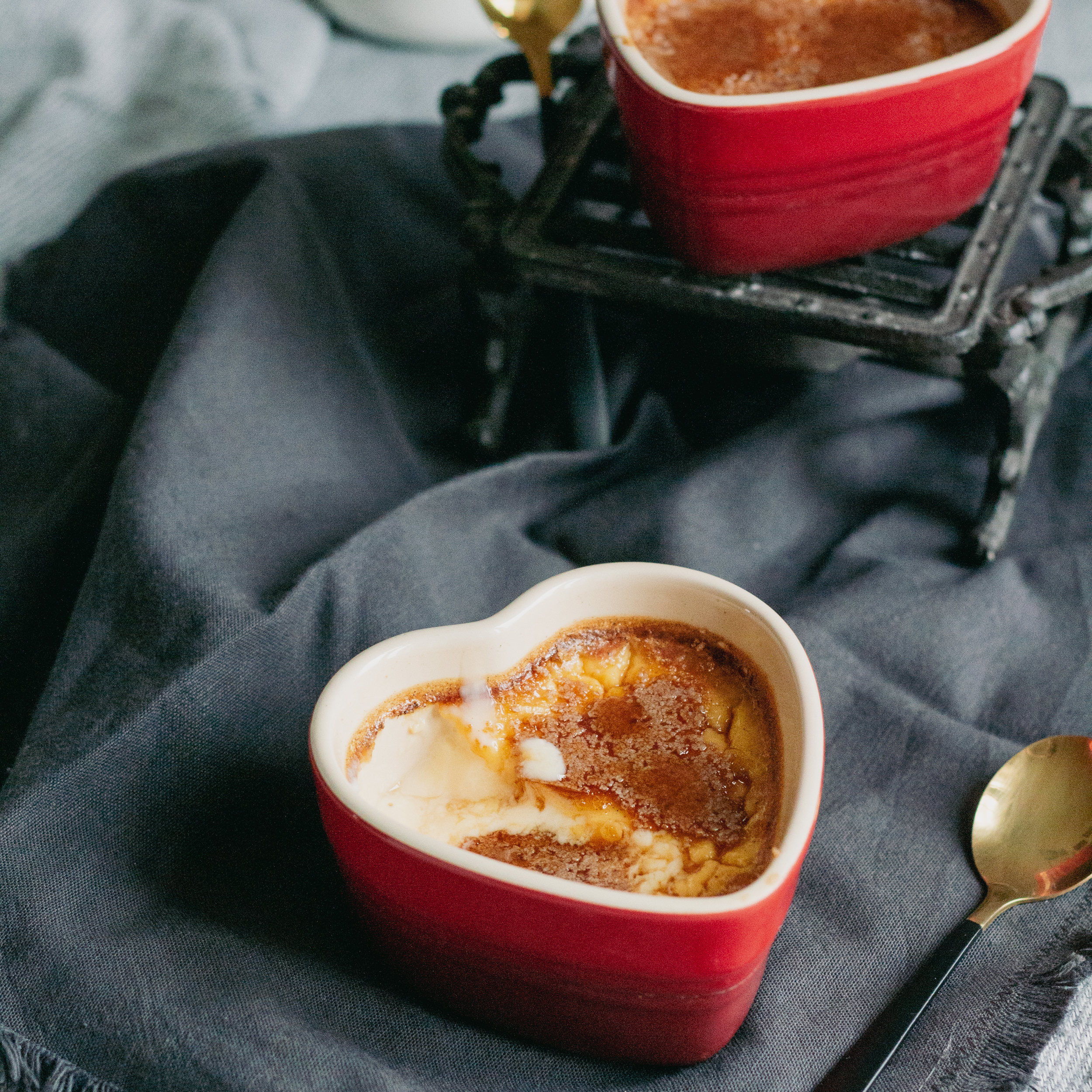 Vier feuerfeste Keramik-Backformen mit jeweils ca. 100 ml Fassungsvermögen bereitstellen.