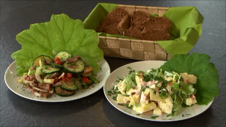 Alle Zutaten feinblättrig schneiden, marinieren und zwei Stunden gut ziehen lassen.