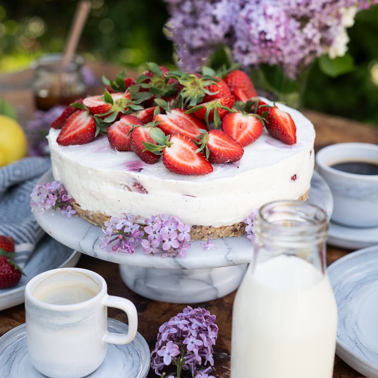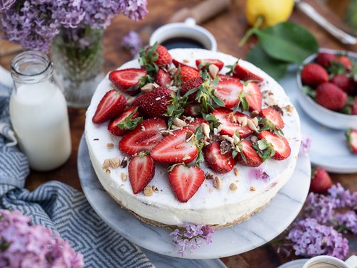 Mit den restlichen Erdbeeren fortfahren und mit der restlichen Creme abschließen. Glattstreichen und im Kühlschrank über Nacht festwerden lassen.