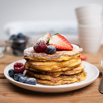 Die Pancakes nach und nach von beiden Seiten für einige Minuten goldbraun ausbacken.