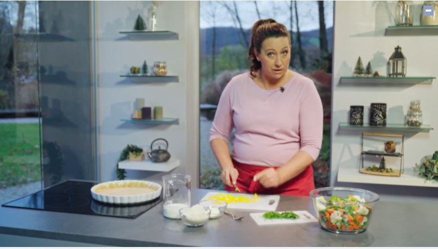 Das Gemüse in die Form geben. Jetzt die Zutaten für den Guss miteinander verquirlen und über das Gemüse geben.