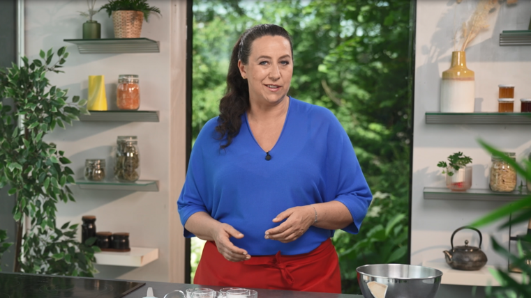 Den Kuchen auf den Grillrost stellen und mit verschlossenem Deckel bei indirekter Hitze ca. 45 Minuten bei 180 °C backen. Vor dem Servieren den Grill-Kuchen mit Kräutern dekorieren.