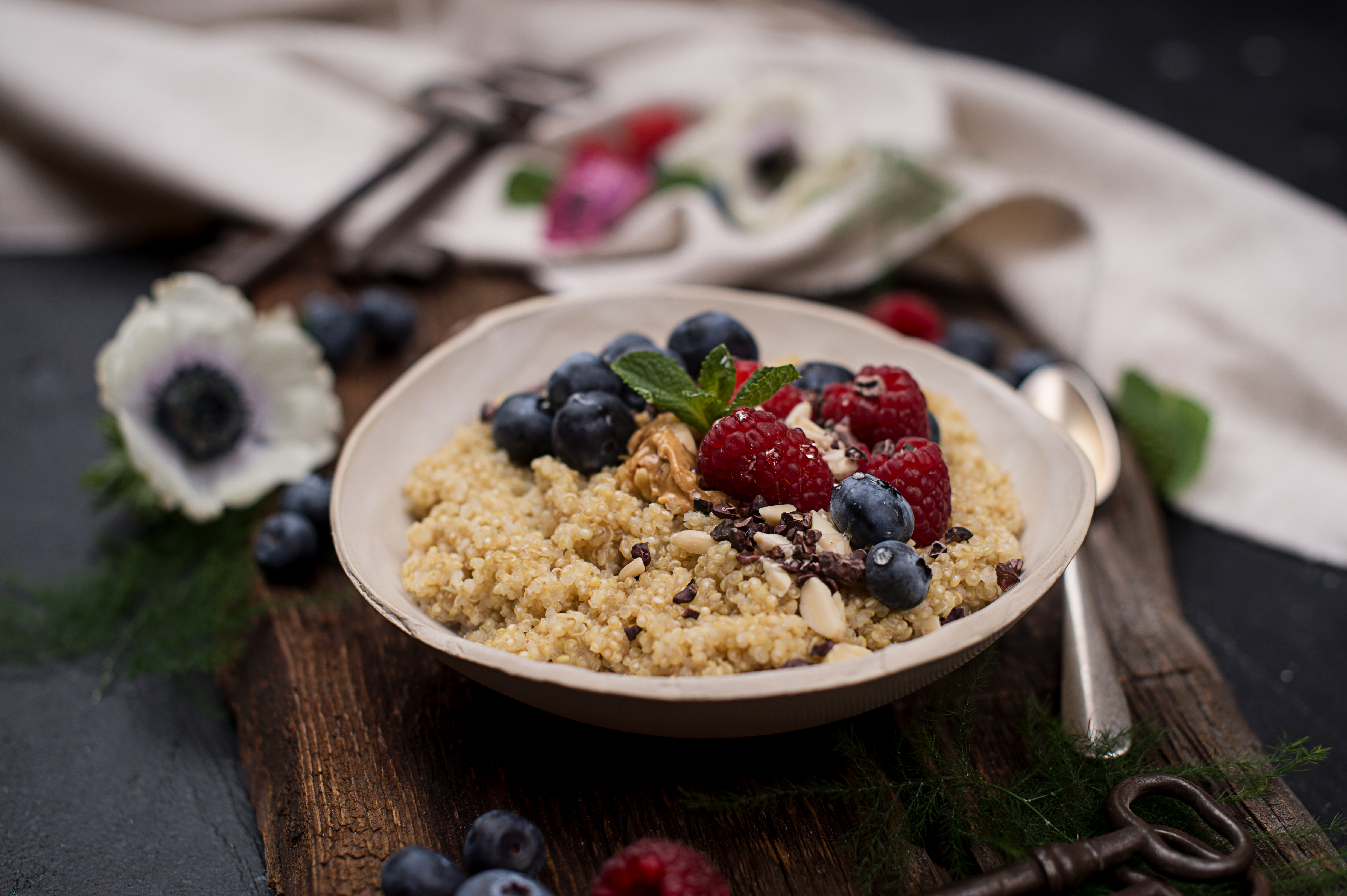 Den Agavendicksaft einrühren und den Hirse Porridge in eine Schüssel geben. Mit Erdnussbutter, Beeren, Mandelsplittern und Kakaonibs garnieren. Noch warm servieren.