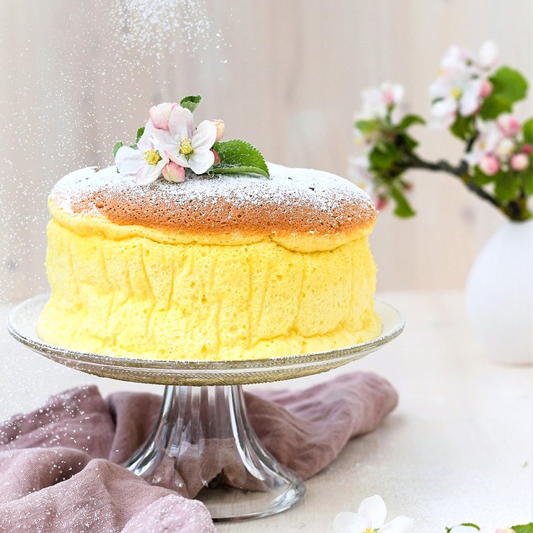 Das Rezept eignet sich für eine Backform mit 18 cm Durchmesser (am besten eine geschlossene Backform verwenden oder mit Alufolie gut abdichten), diese mit Butter fetten und mit Backpapier auslegen. Das Backpapier sollte über die Form hinausragen, weil die Masse beim Backen stark aufgeht (Gesamthöhe ca. 15 cm).