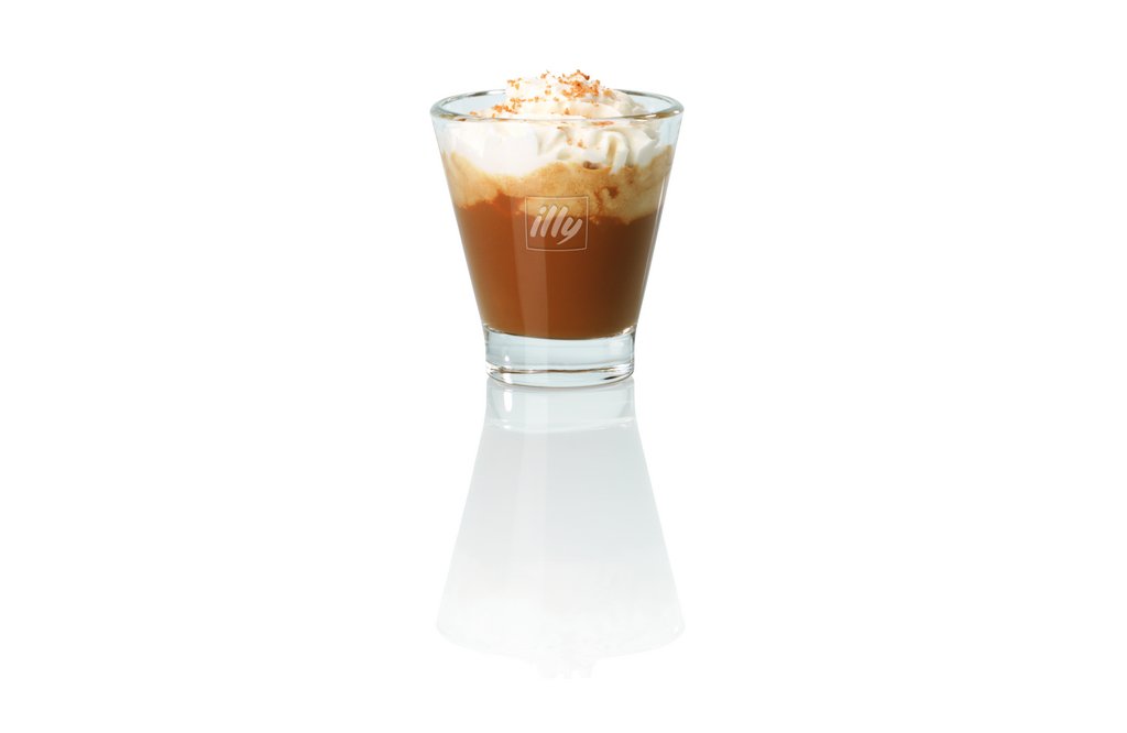 Das Schlagobers mit dem Handrührgerät in einem Rührbecher steif schlagen und vorsichtig auf das Getränk häufen.