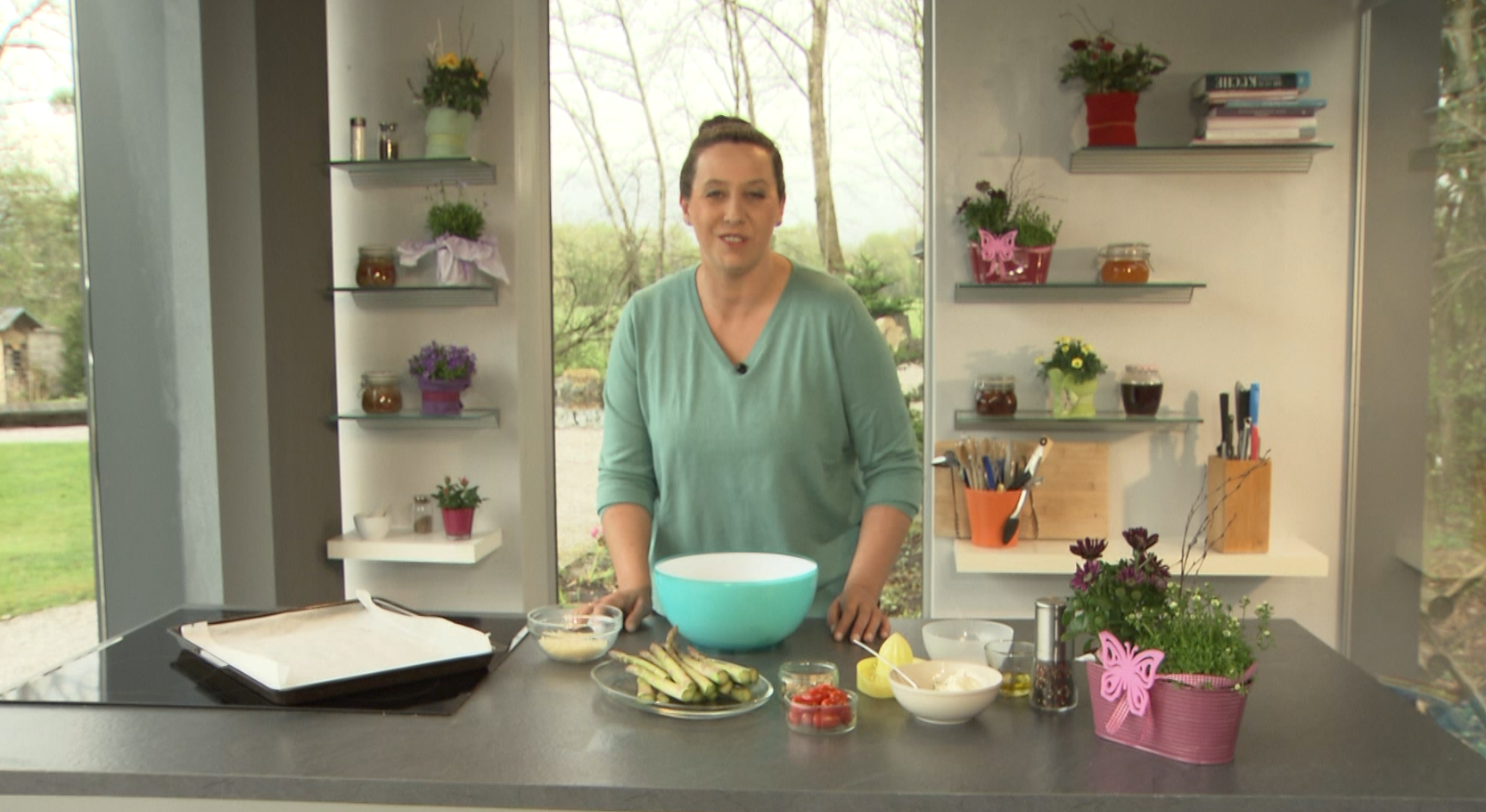 Diese Mischung dann über den Spargel bröseln und alles zusammen für ca. 15 Minuten bei 180 Grad goldbraun backen.