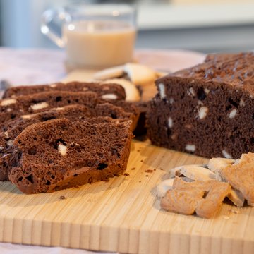 Die gequollene Keksmasse mit einem Teigschaber oder Holzlöffel vorsichtig unter den Eischnee heben. Die Mehlmischung hinzugeben und ebenfalls unterheben. Der Teig sollte zähflüssig sein. Bei Bedarf noch etwas Mehl beziehungsweise Kekskrümel oder Milch hinzugeben, um die gewünschte Konsistenz zu erreichen.