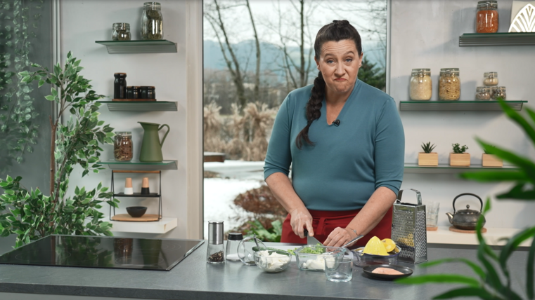 Die Lachsforelle in feine Streifen schneiden. Die Frischkäsecreme und die Lachsforelle in Gläser schichten.