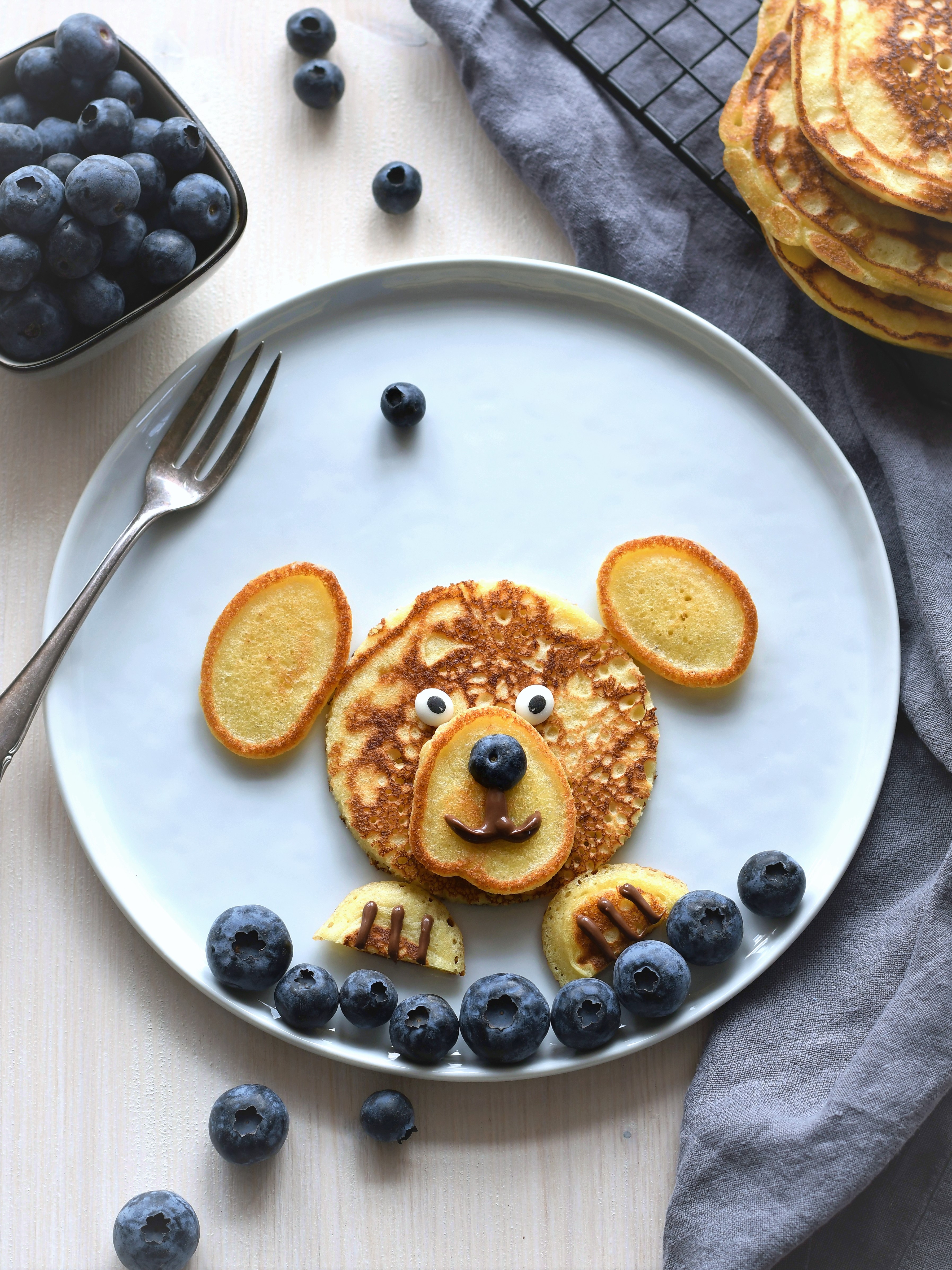 Enden eines kleineren Pancakes abschneiden und als Pfoten auflegen.
