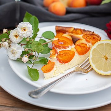 Eine Springform (24 cm) mit Backpapier auslegen, die Masse einfüllen und mit halbierten Marillen belegen.