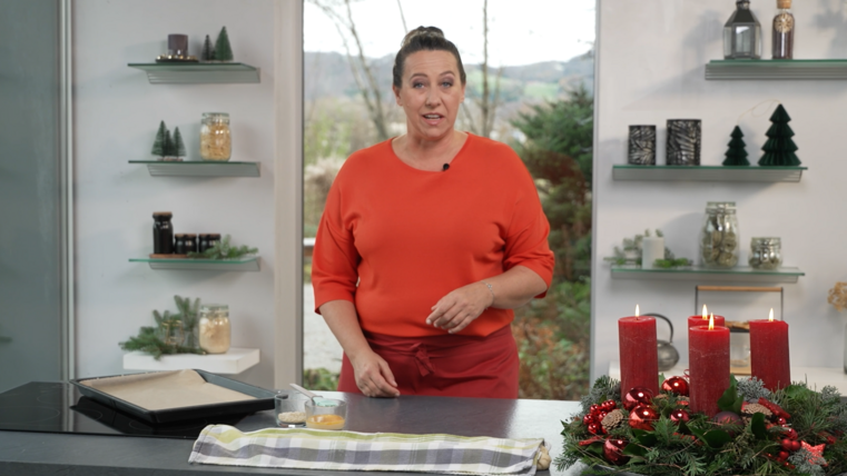Danach Butter, Ei und Mandeln zugeben und gut verkneten. Den Teig rund eine Stunde rasten lassen.