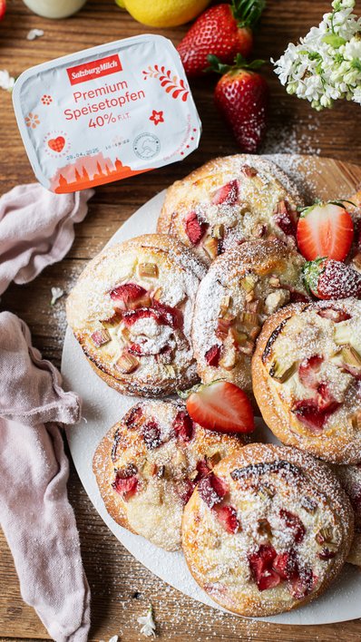 Streusel darauf verteilen und im vorgeheizten Backofen bei 180°C Heißluft für rund 15 Minuten backen. Mit Staubzucker bestreut servieren.