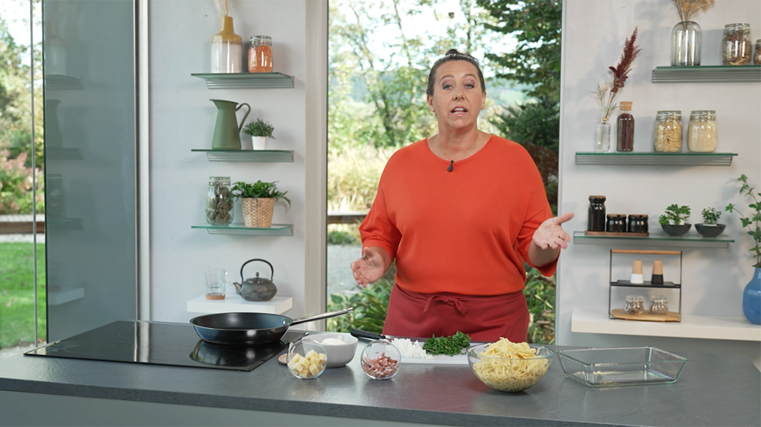 Zum Schluss noch den Käse in die Masse geben und leicht anschmelzen lassen.