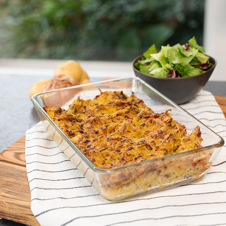 Serviert wird der Rösti-Auflauf am besten mit frischem Salat.