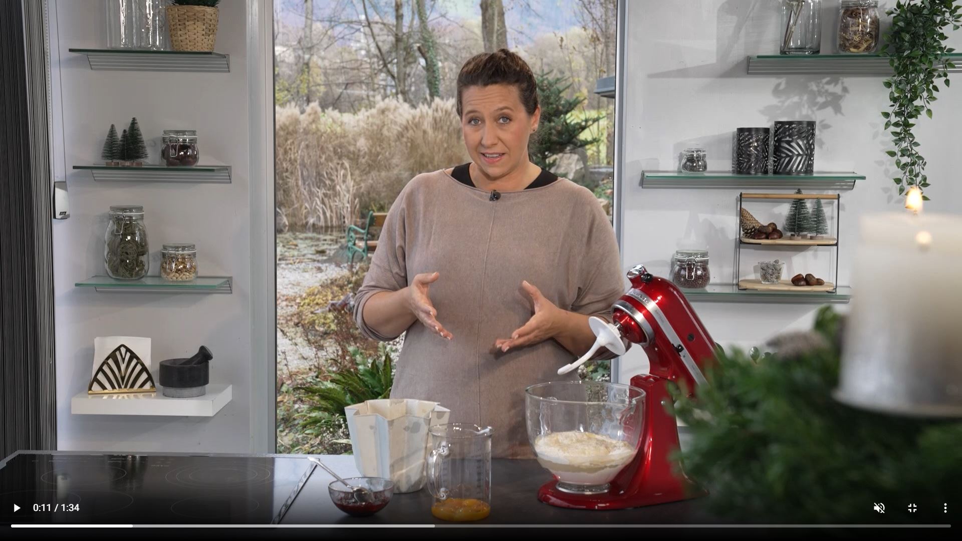 Statt Orangeat, Zitronat und Rosinen kommen jetzt in Rum eingelegt Cranberries (bzw. 2 EL Preiselbeermarmelade) dazu – weiterkneten.
