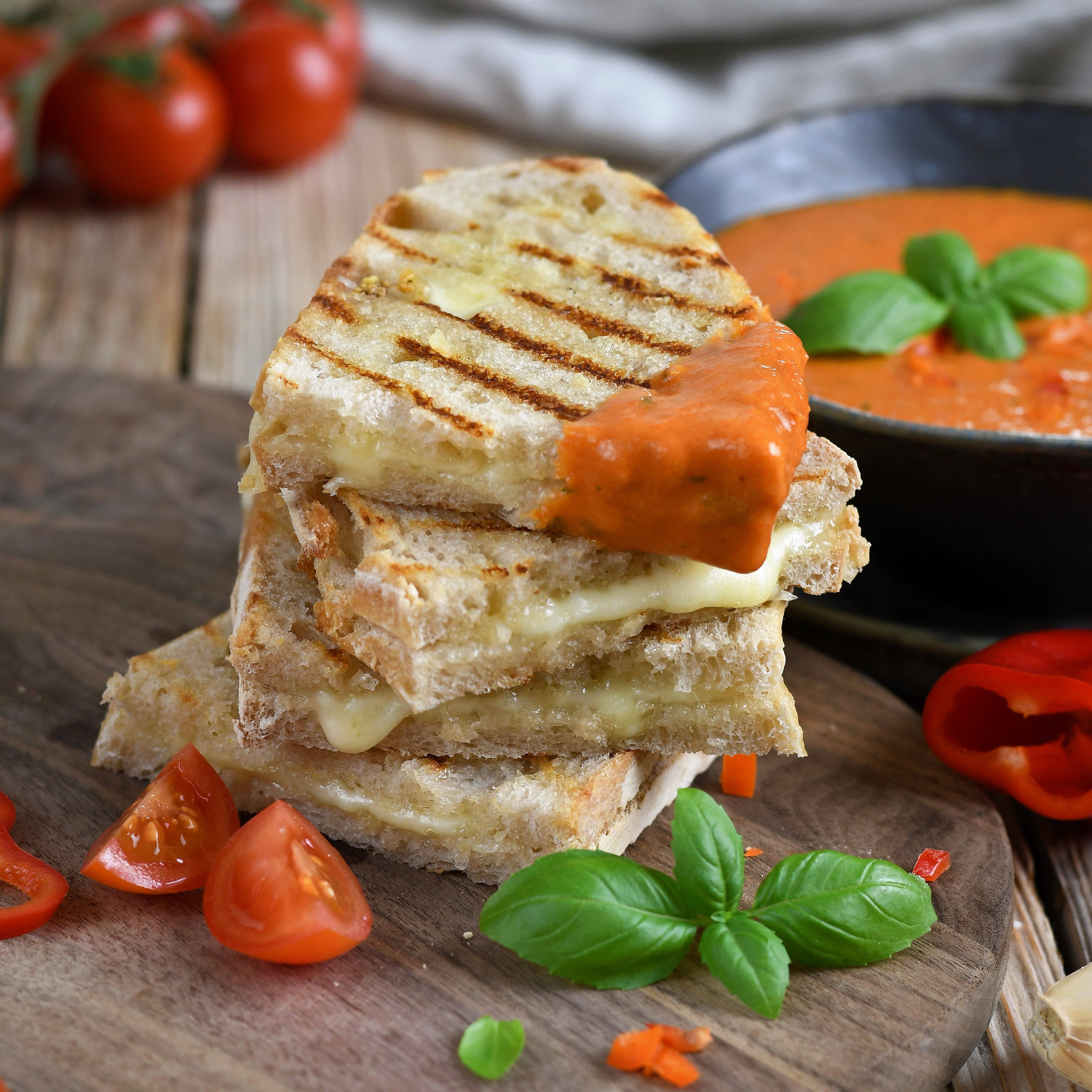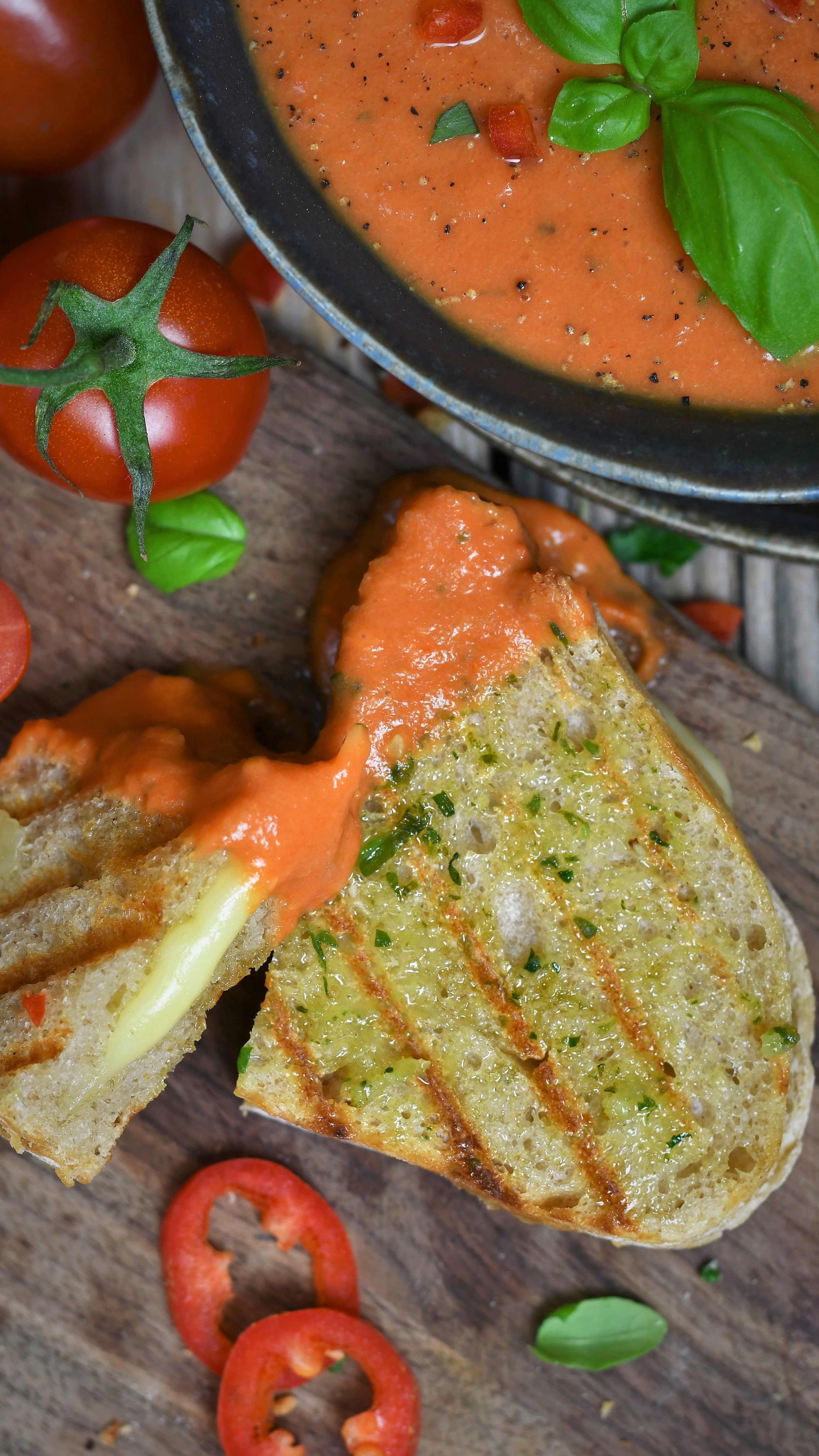 Butter schmelzen, Knoblauch und Petersilie zugeben und auf den Toast streichen. Toast mit Tomatensuppe genießen.