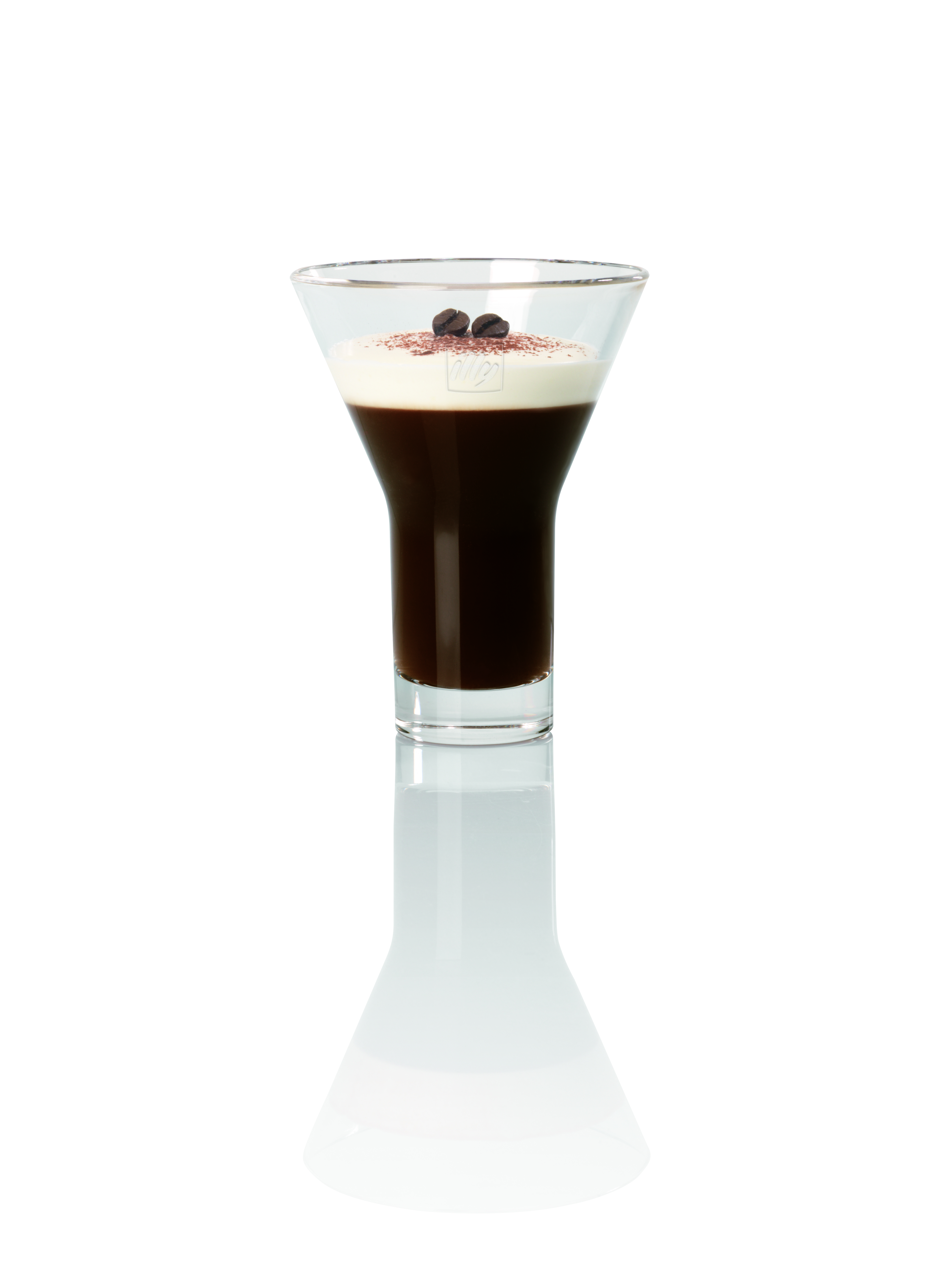 Mit den zwei Kaffeebohnen dekorieren, mit Kakaopulver bestäuben und servieren.